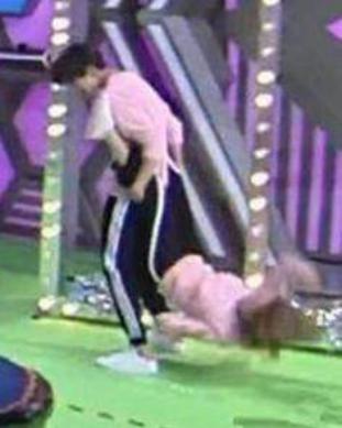 台湾前黑涩会美眉-鬼鬼吴映洁进军内地就是从综艺节目下手,有次参加《快乐大本营》游戏环节男嘉宾需要背着鬼鬼来回跑,可是鬼鬼要下来,导致脑袋亲吻大地,结局-轻微脑震荡。