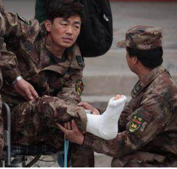 王宝强在录制《真正男子汉》的时候从高地摔下,被迫退出,结局-右腿骨折。
