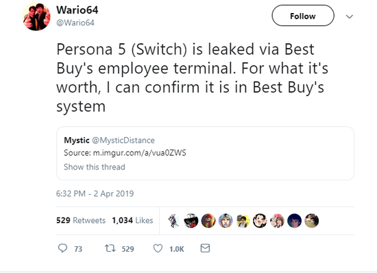 作为全球最大的家用电器与电子产品的零售集团,Best Buy(百思买)的后台系统截图近日被泄露了出来,图中显示《女神异闻录5》NS版的相关信息已经通过后台上传,并且有外国网友在Twitter上证实,这的确是Best Buy的后台界面。