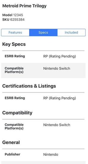 从图中可以看出,《女神异闻录5》的NS版售价为59.99美元,价格也是正常的心理价位,详细的游戏信息也在后面的截图中写出,只不过没有具体的发售时间。在这之后,一名ID为Wario64的外国网友证实了这就是Best Buy的后台系统界面,看来《女神异闻录5》登上Switch平台只差官方的正式宣布了。同时,Best Buy还泄露了《密特罗德:Prime三部曲》以及《塞尔达传说:众神三角力量》的相关信息,同样没有具体的发售时间。