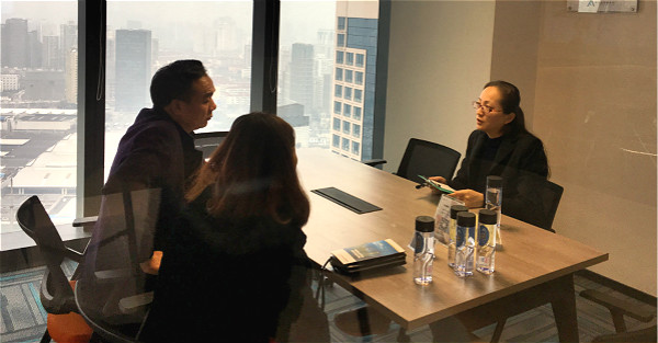 图说:上海市申房律师事务所律师马海燕(右)在接待来客。